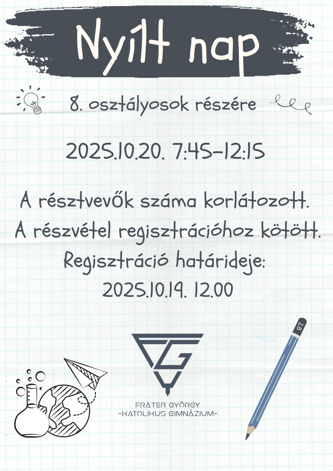 Nyílt nap 2025.10.20. hétfő 8. évfolyamosok részére
