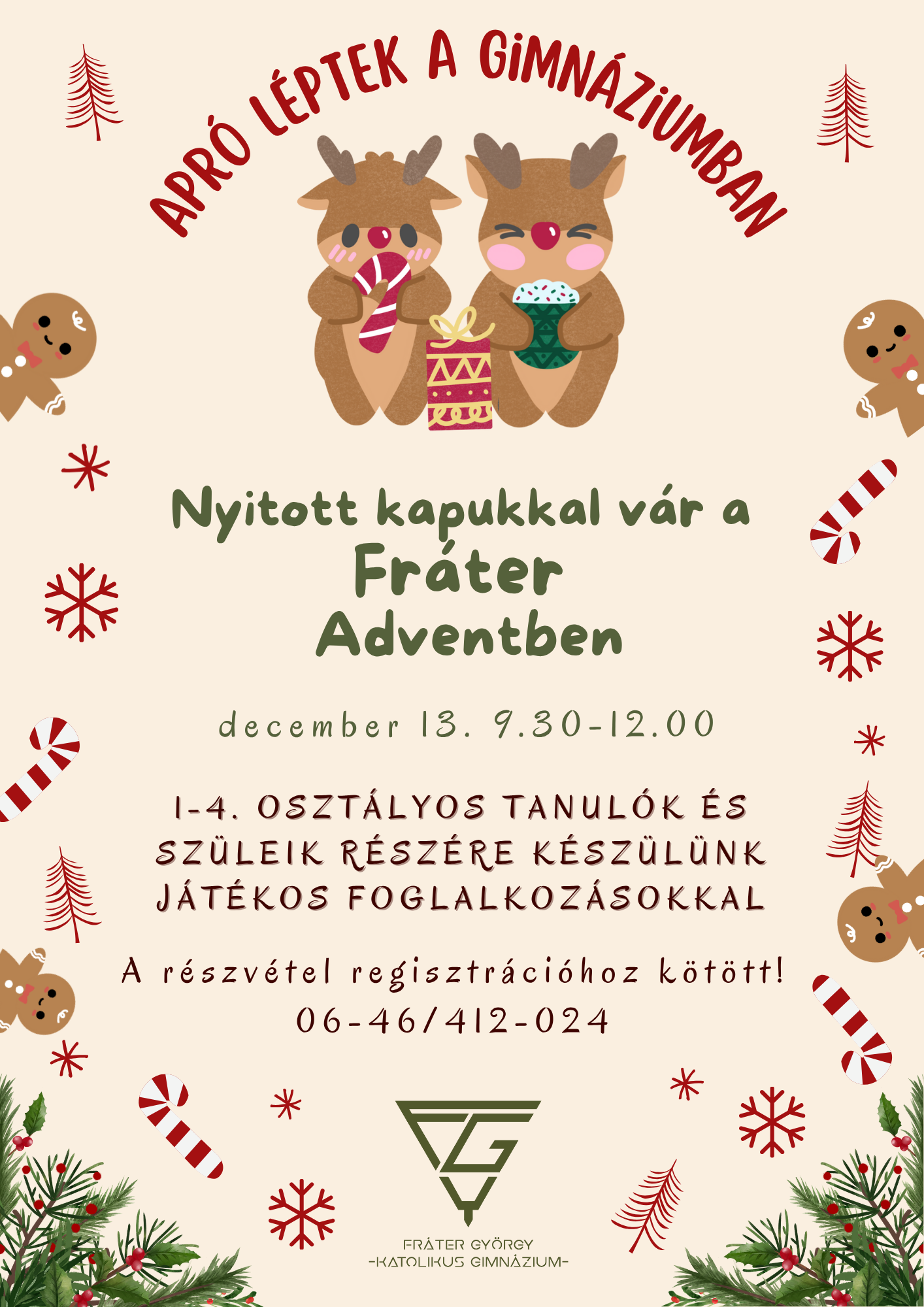 „Nyitott kapukkal vár a Fráter Adventben” elnevezéssel várja gimnáziumunk az 1-4.