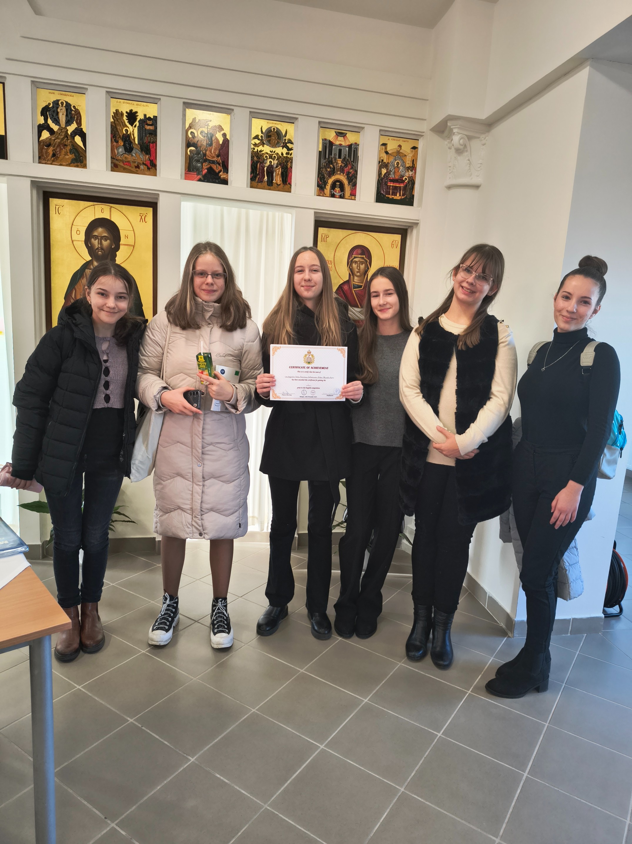 A Görögkatolikus Iskola regionális angol nyelvű társalgási versenyén a 7. B osztály egyik csapata 1. helyezést ért el.