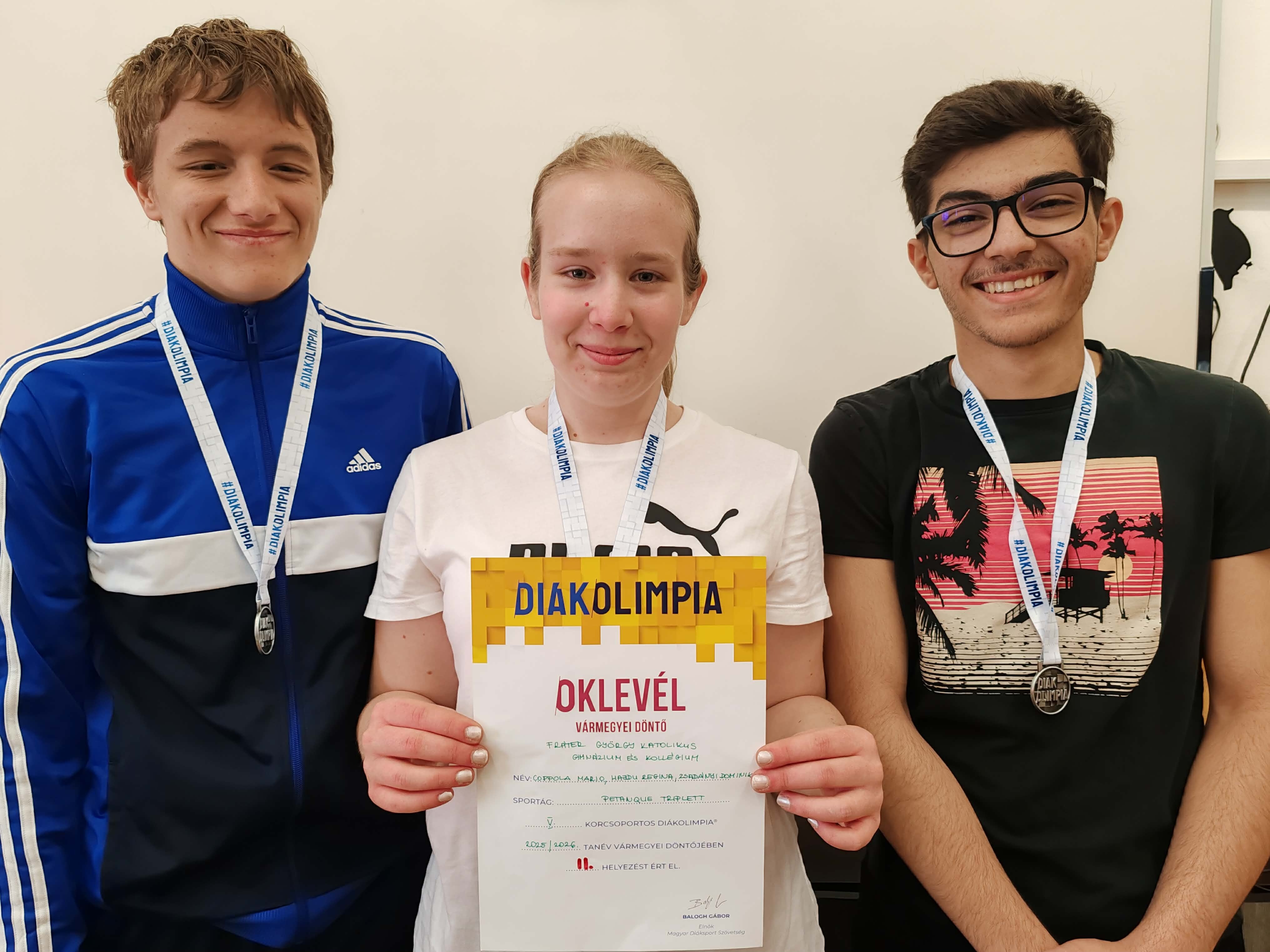 2026. április 17-én a Magyar Diáksport Szövetség által szervezett Pétanque vármegyei döntőn Coppola Mario, Hajdu Regina, Zsadányi Dominik 10. C osztályos tanulók 2. helyezést értek el.