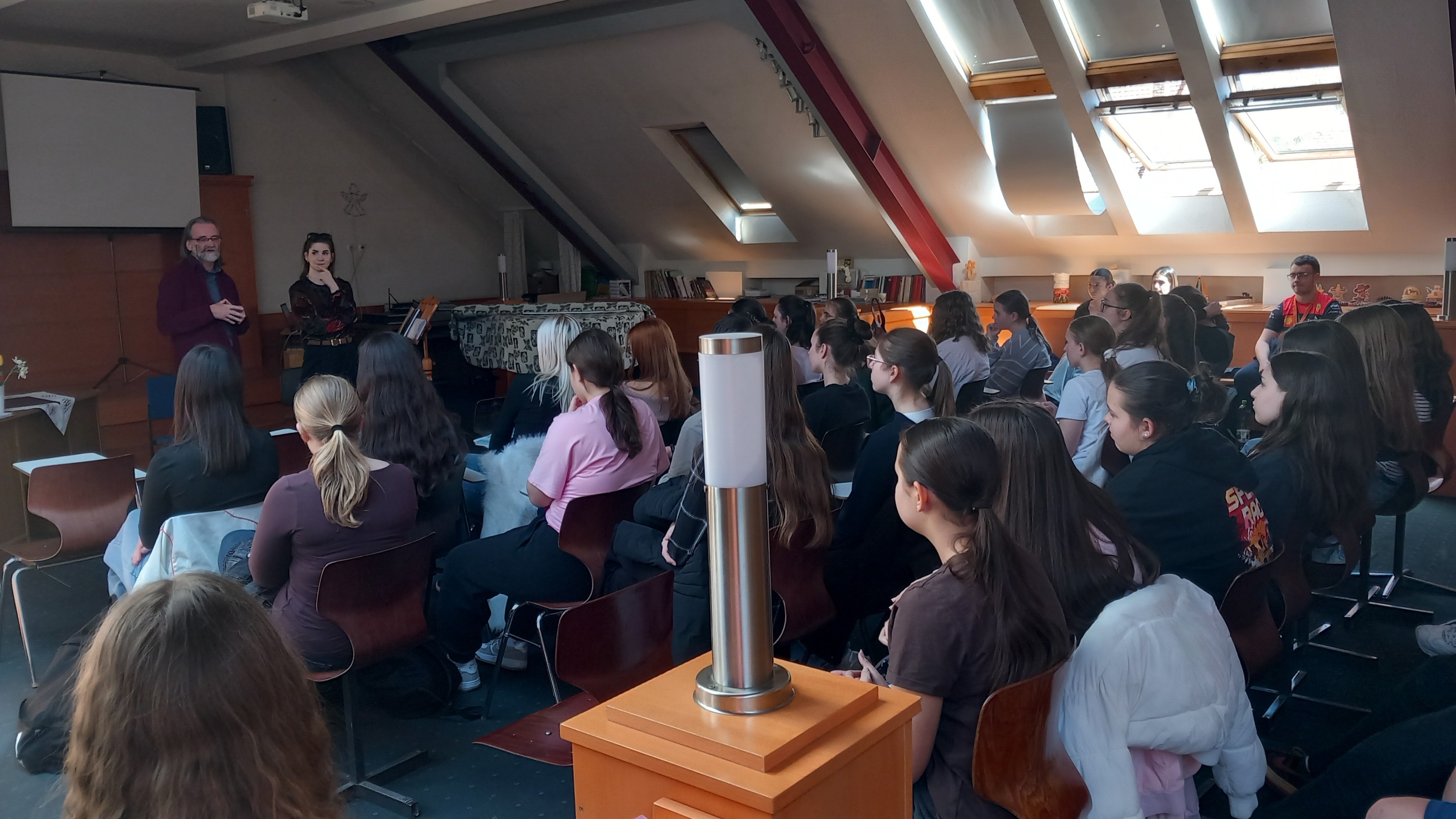 A költészet napjához kapcsolódóan a Jedlik Ányos Tudományos Ismeretterjesztő Társaság szervezésében április 22-én meglátogatta iskolánkat Mikita Gábor, a Színháztörténeti és Színészmúzeum vezetője, valamint Mikita Dorka, a Miskolci Nemzeti Színház fiatal színésznője, iskolánk volt diákja. Apa és lánya "Mint tükröd, vagyok leghűbb barátod" című előadásuk és kötetlen beszélgetésük során megosztották velünk egy-egy vershez kötődő személyes gondolataikat, érzéseiket. Diákjainkat is igyekeztek meghívni erre a belső kalandra és felfedezésre, melyet egy-egy vers személyesen kinek-kinek adhat. Köszönjük látogatásukat és személyes gondolataikat!
