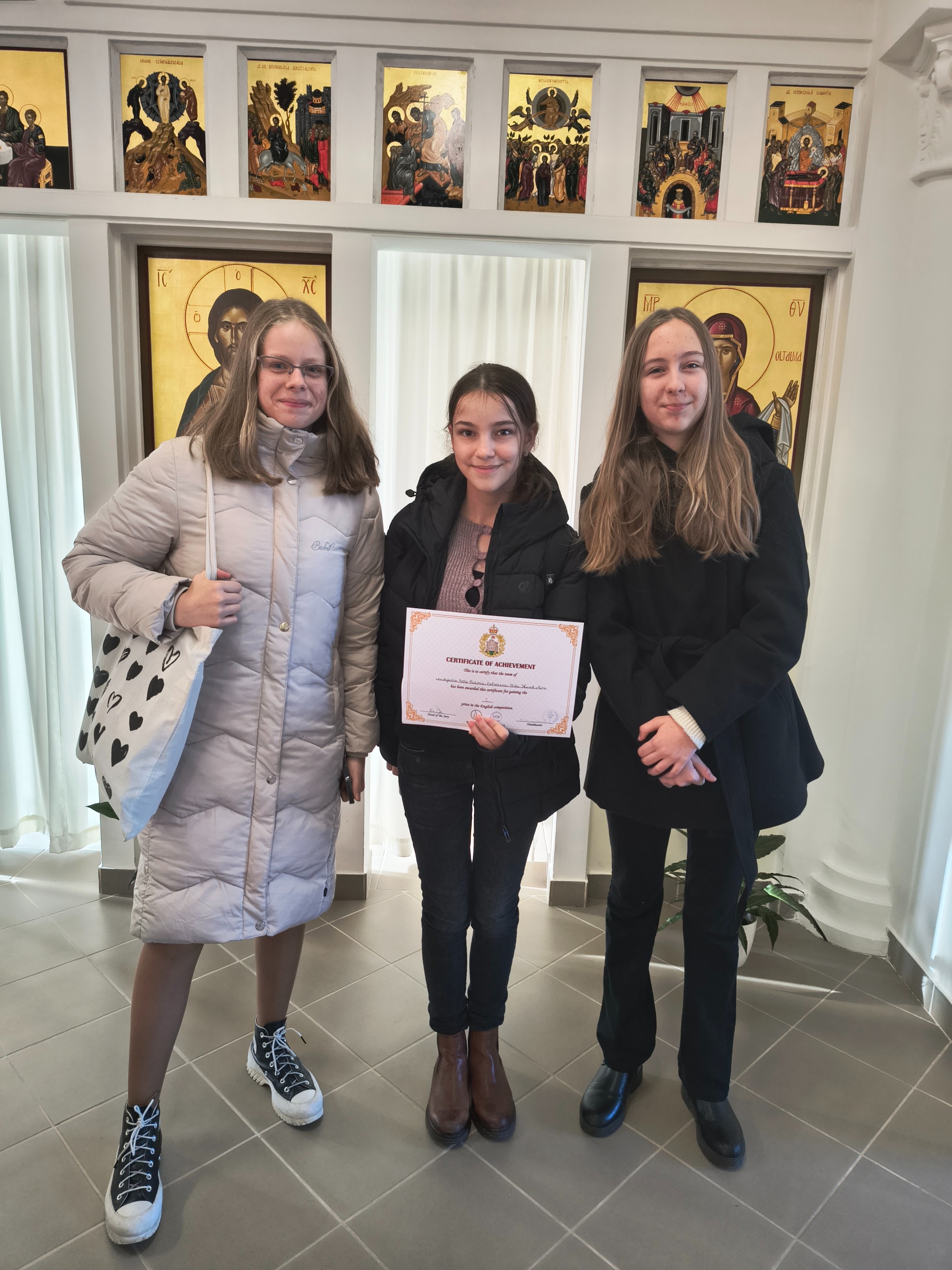 A Görögkatolikus Iskola regionális angol nyelvű társalgási versenyén a 7. B osztály egyik csapata 1. helyezést ért el.