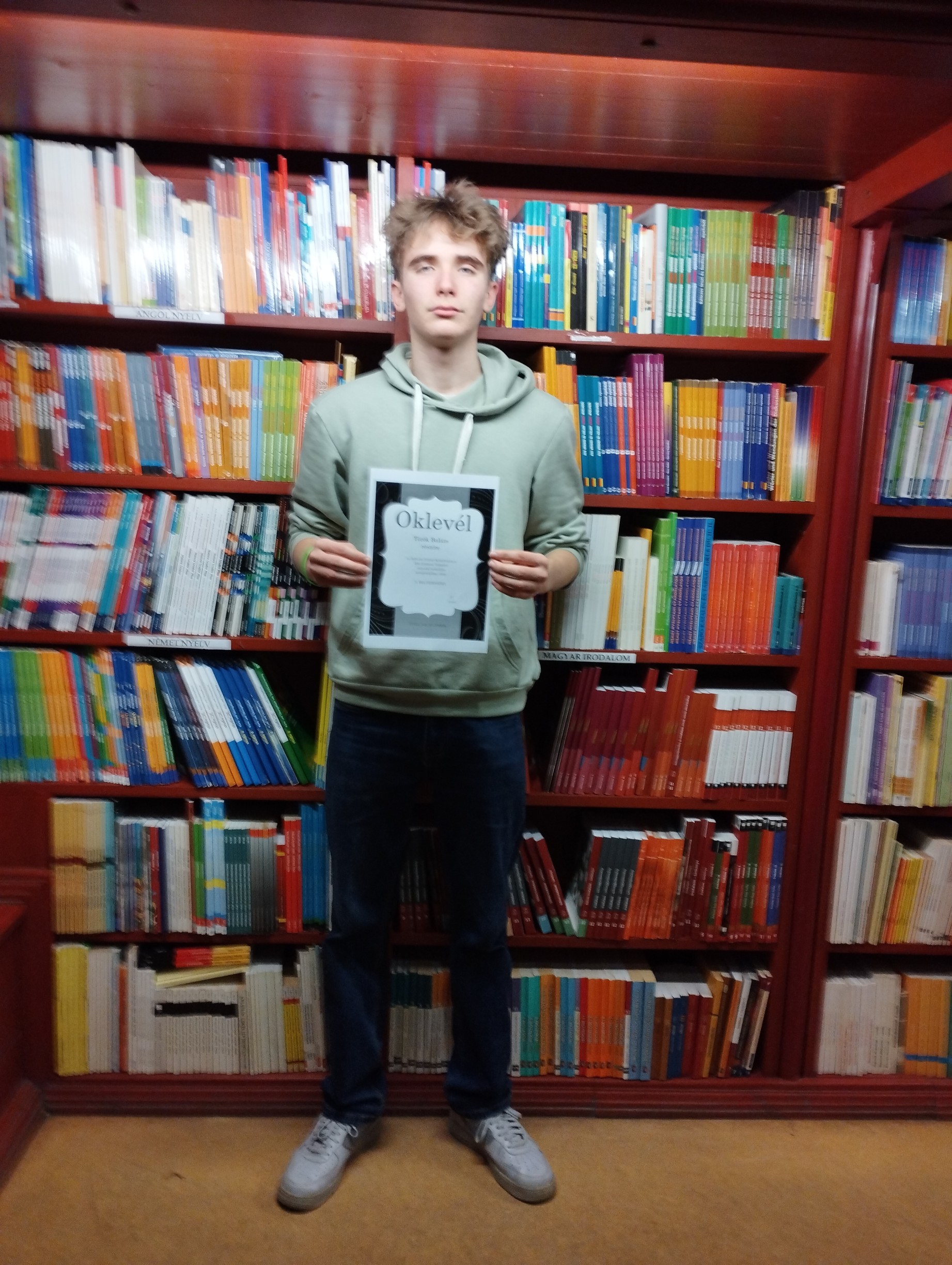 Az Implom József helyesírási versenyen Török Balázs 10.B osztályos tanuló vármegyei III. helyezést ért el.